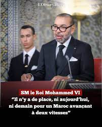 En somme afin d’assurer aux générations actuelles et futures de meilleures conditions de vie décentes dans une géopolitique mondiale tumultueuse, le Souverain Marocain, conscient des déroutages et des dérivations chantées en chorale et à cor et à cri au monde par l’académisme et le dogmatisme d’obédience néolibérale durant les années 1980, escompte promouvoir un modèle économique étayé sur une croissance inclusive et surtout partagée, créatrice d’emplois, et assurément distributrice de richesses pour tous les citoyens Marocains. Le Pilote de notre Royaume refuse un Maroc à deux vitesses, et plaide et parlemente chevaleresquement un Royaume à une et une seule vitesse, une célérité qui carbure, navigue et décolle vers le ciel du développement, de démocratie d’un Maroc digne, méritoire et juste.