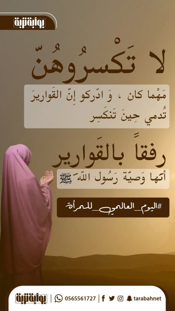 Le Prophète, paix et bénédiction sur LUI, dans son dernier message avant de rendre sa sainte âme, nous recommande, la piété envers les femmes et la nécessité de se montrer affectueux, affectif et affable avec elles, pour preuve, il les fait comparer à des amphores pour exprimer leurs fragilités et leurs sensibilités. Parmi ses dernières paroles avant de rendre sa Sainte âme : ” Je vous conseille la bonté envers les Femmes”.
